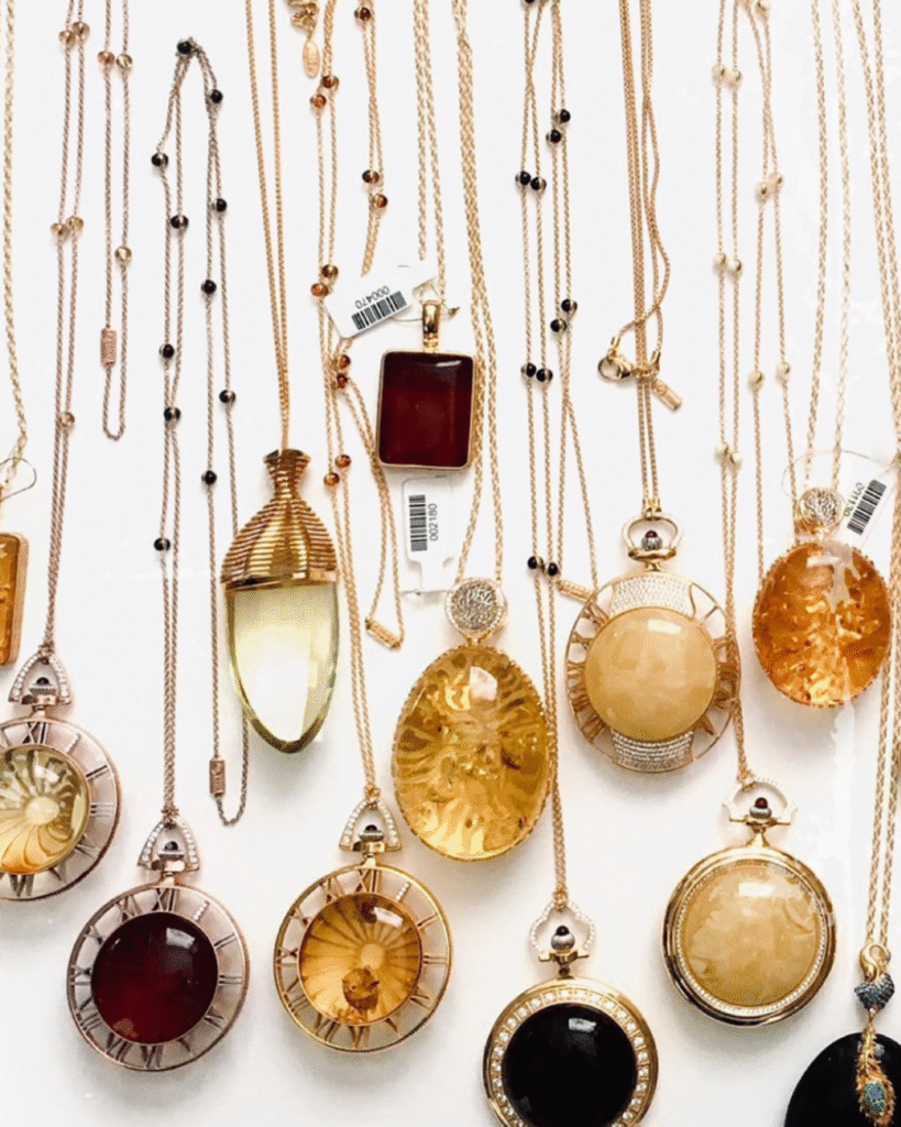 An increasingly interesting phenomenon is amber’s return to the collections of contemporary designers. It appears in modern, minimalist forms, reinterpreted in ways very different from traditional amber jewelry. If this trend continues, amber has a real chance to reappear in fashion collections in Europe and the United States.